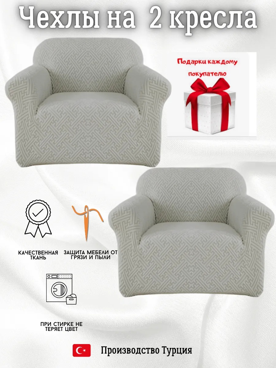 Чехлы на 2 кресла без оборки, жаккард, серый