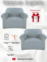 Чехлы на 2 кресла без оборки, жаккард, синевато-серый