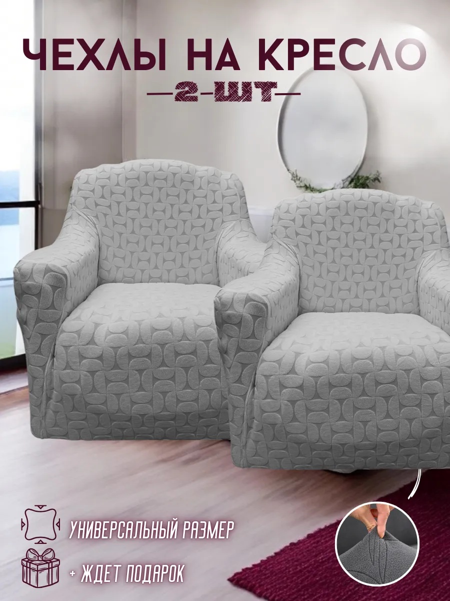 Чехлы на 2 кресла без оборки, жаккард, средне-серый