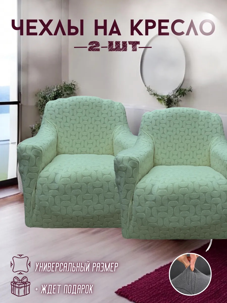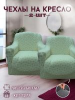 Чехлы на 2 кресла без оборки, жаккард, зеленая мята, зеленый, мятный
