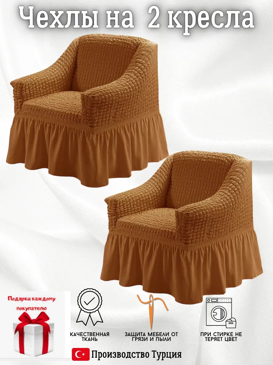 Чехлы на 2 кресла с оборкой, стрейч, красно-коричневый