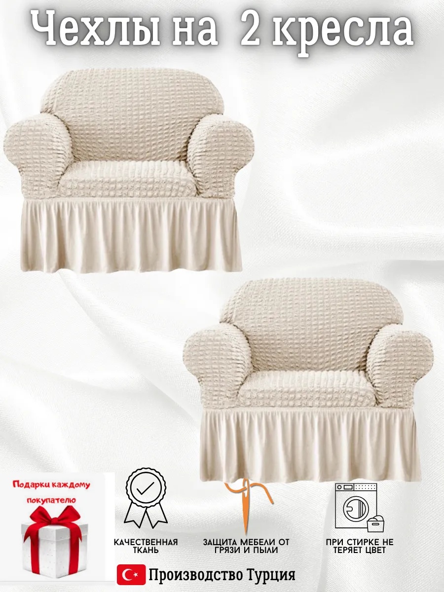 Чехлы на 2 кресла с оборкой, стрейч, кремовый
