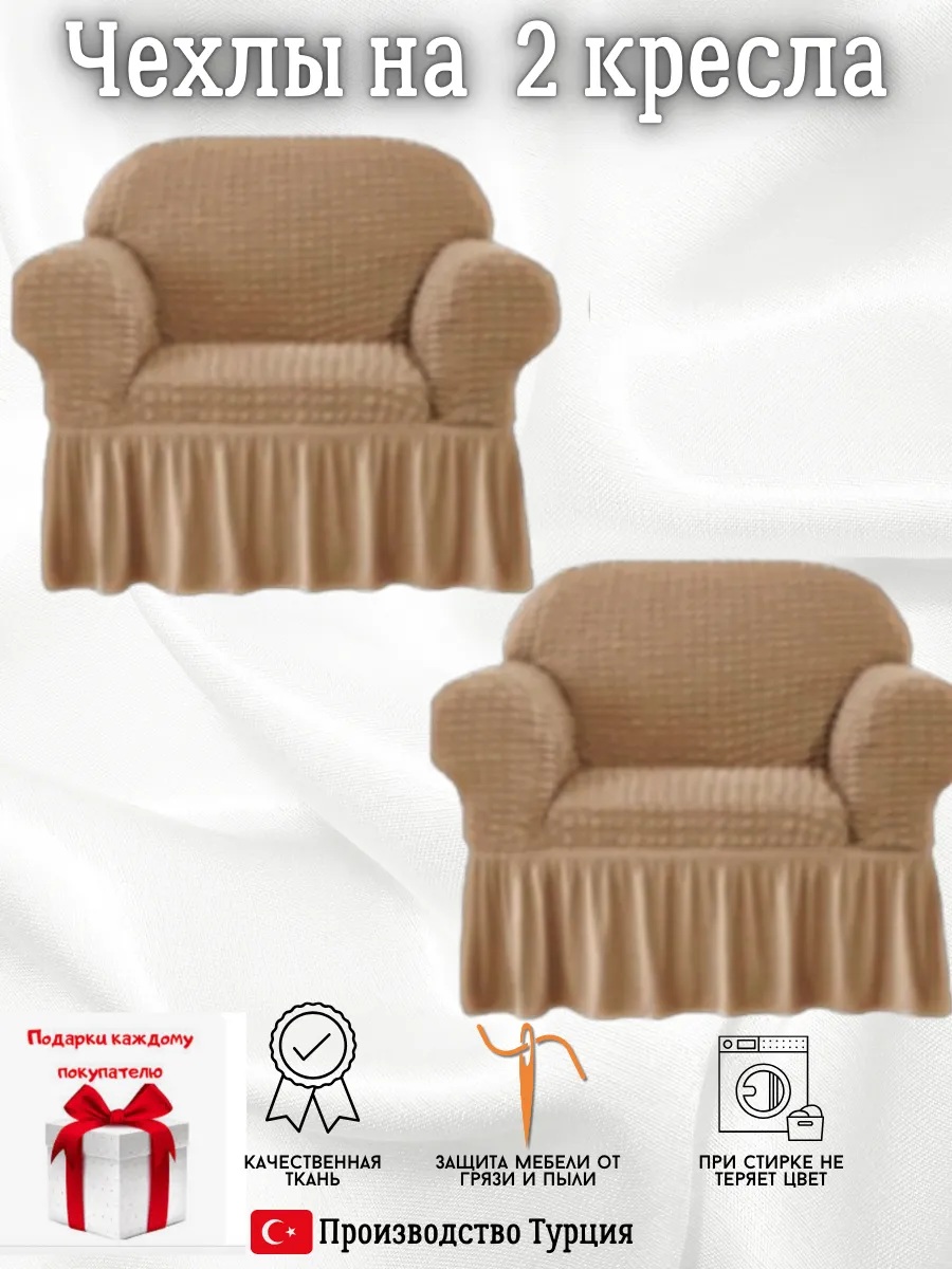 Чехлы на 2 кресла с оборкой, стрейч, медно-коричневый