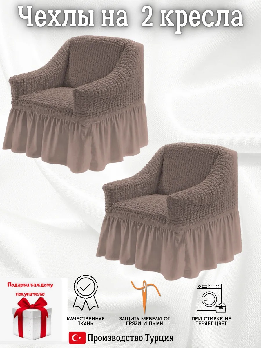 Чехлы на 2 кресла с оборкой, стрейч, пепел