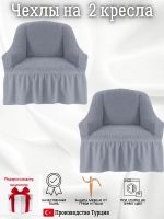 Чехлы на 2 кресла с оборкой, стрейч, серый