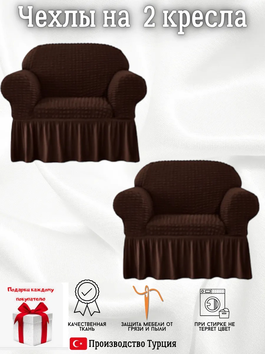 Чехлы на 2 кресла с оборкой, стрейч, шоколадный
