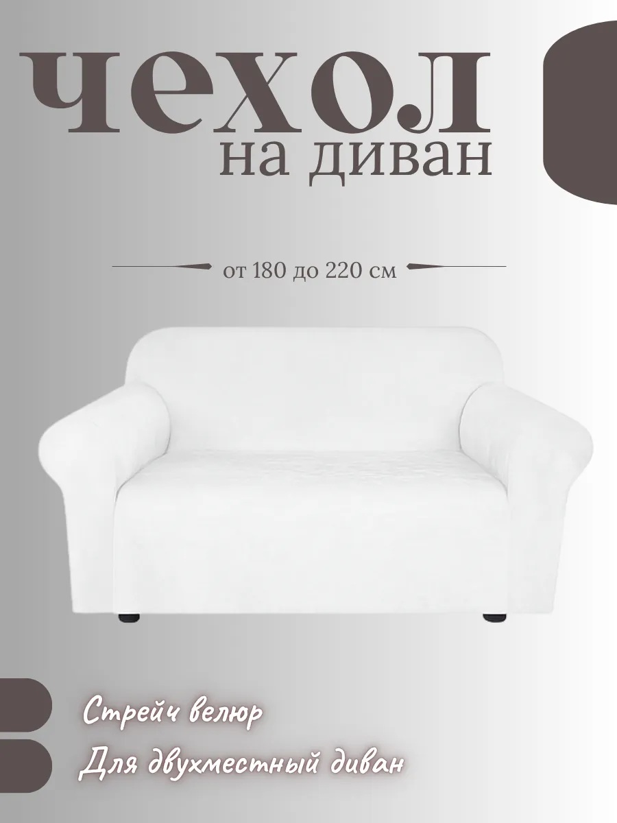 Чехол на 2-местный диван, без оборки, велюр, белый