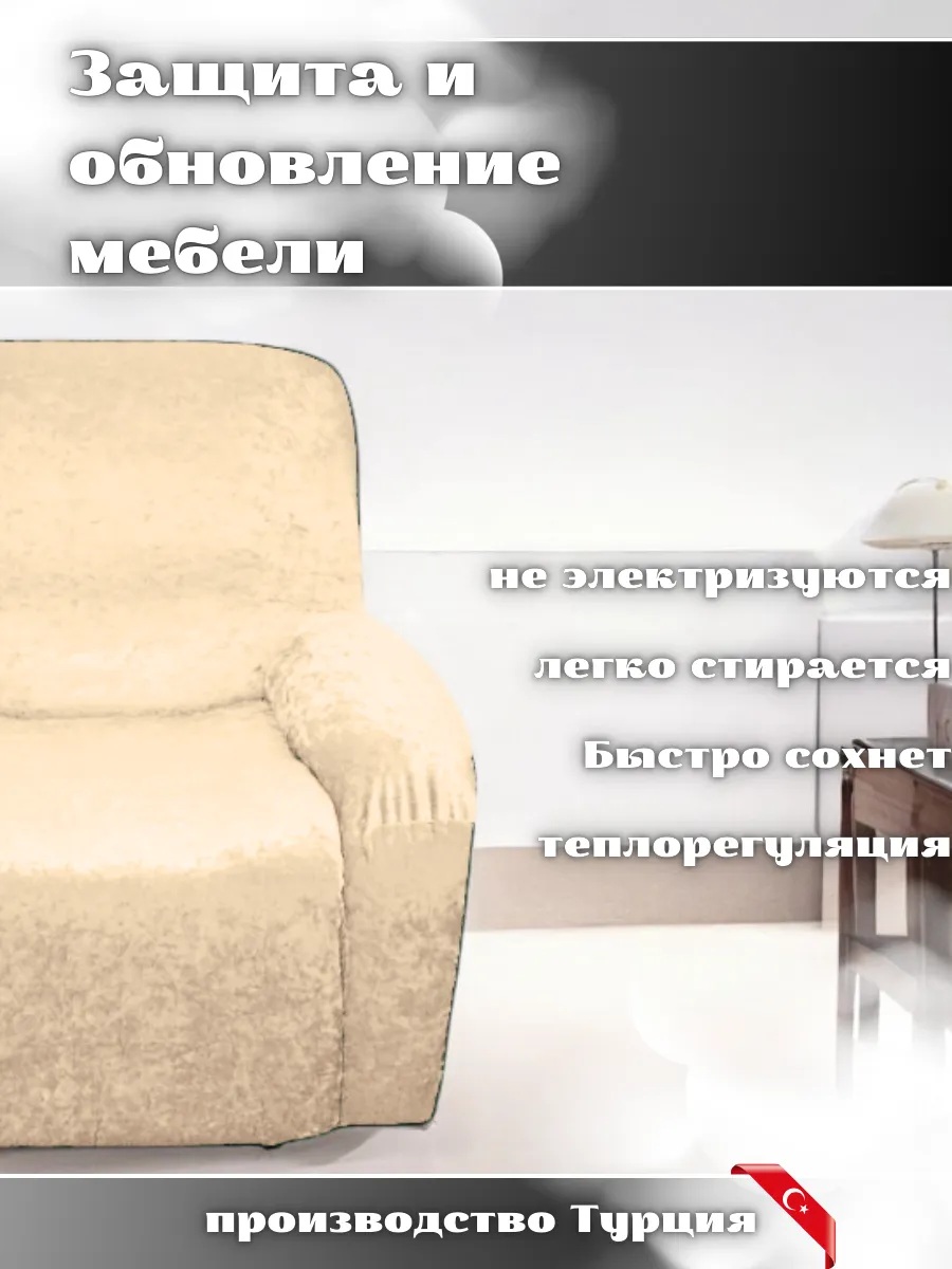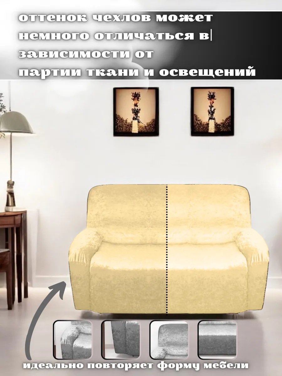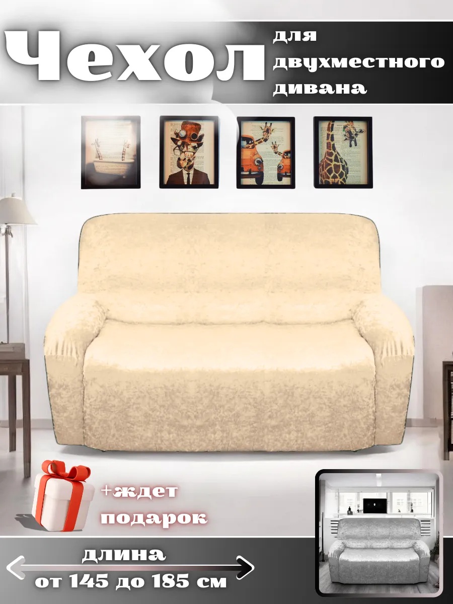 Чехол на 2-местный диван, без оборки, велюр, бежевый