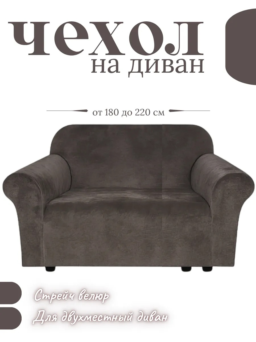 Чехол на 2-местный диван, без оборки, велюр, темный горький шоколад