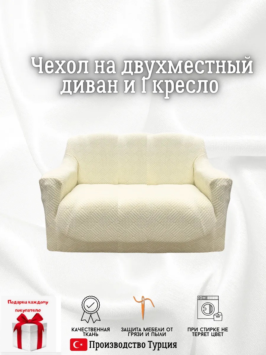 Чехол на 2-местный диван, без оборки, жаккард, кремовый