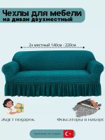 Чехол на 2-местный диван, с оборкой, стрейч, тиффани
