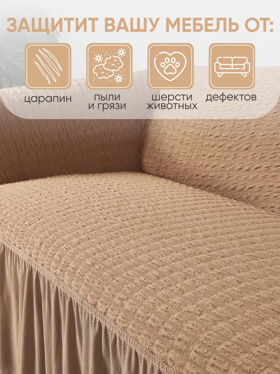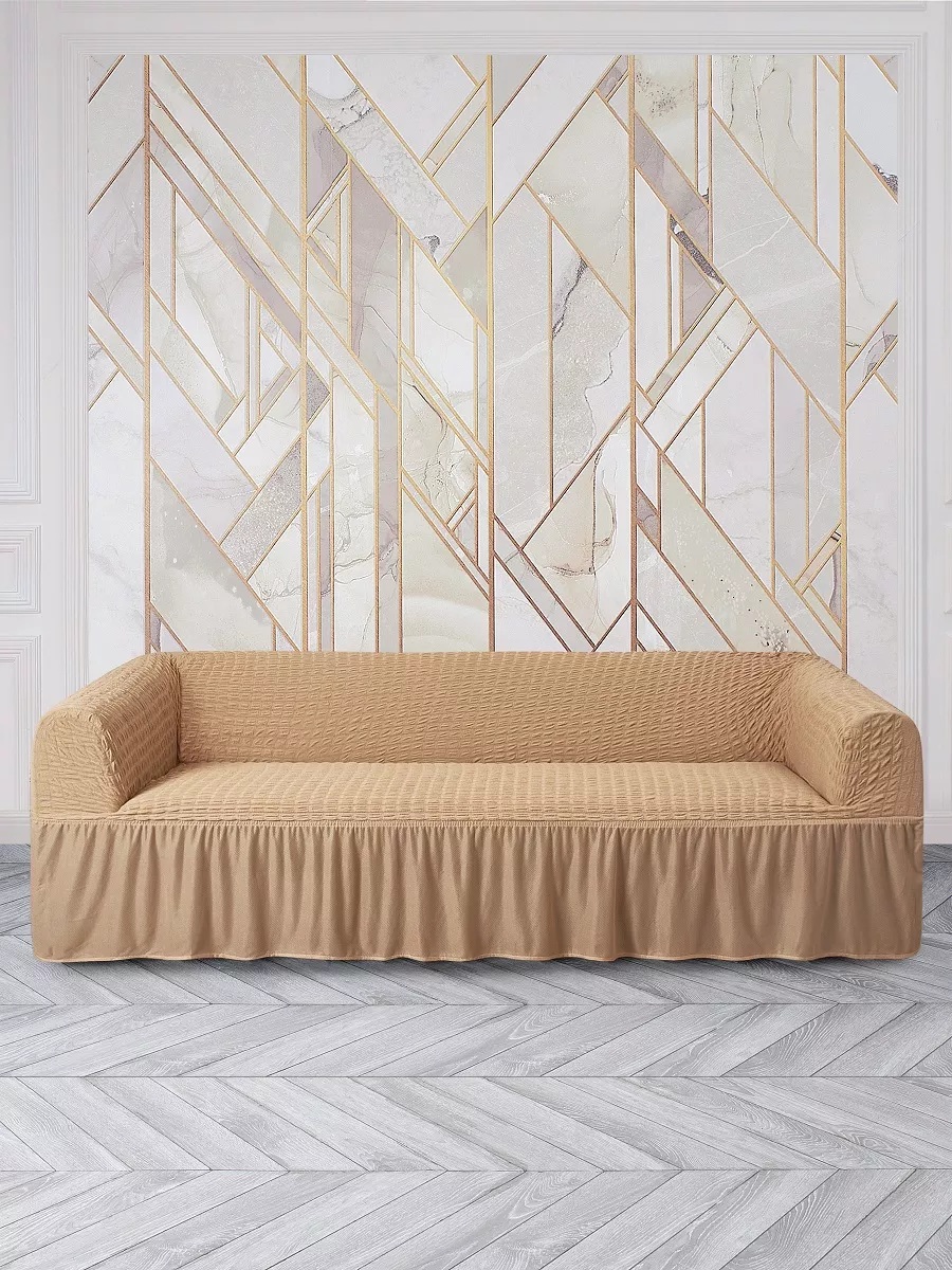 Чехол на 3-х местный диван с оборкой ,Бежевый