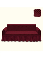 Чехол на 3-х местный диван с оборкой Жаккард Соты,бордовый
