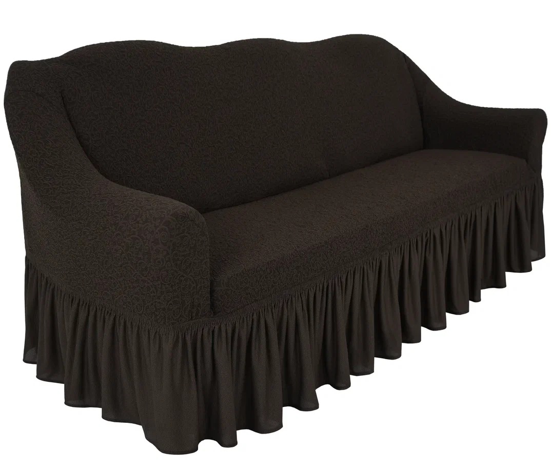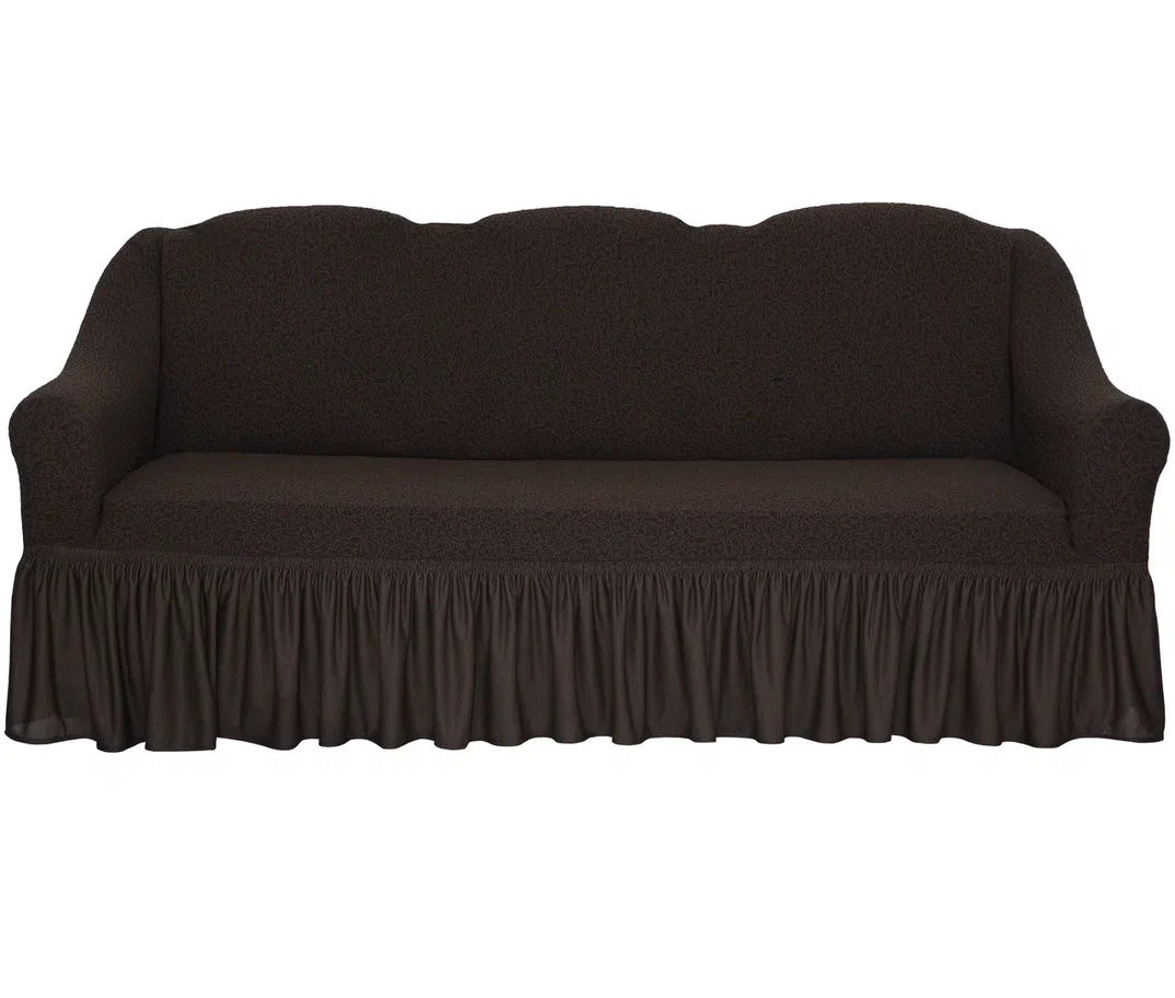 Чехол на 3-х местный диван с оборкой Жаккард,шоколадный