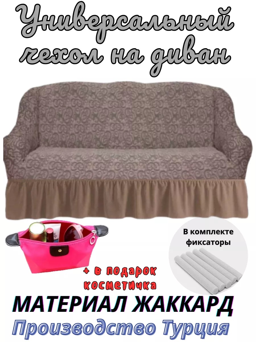 Чехол на 3-х местный диван с оборкой Жаккард, кофе