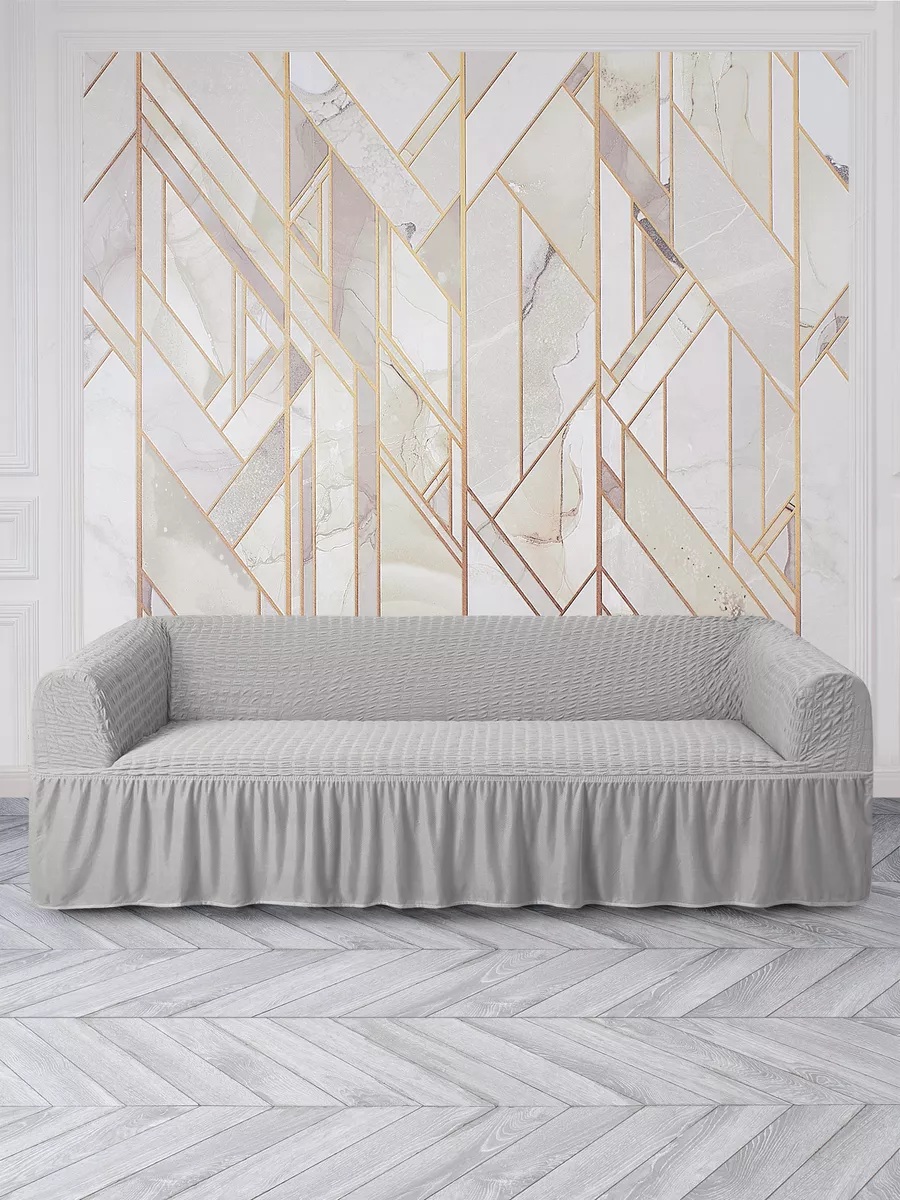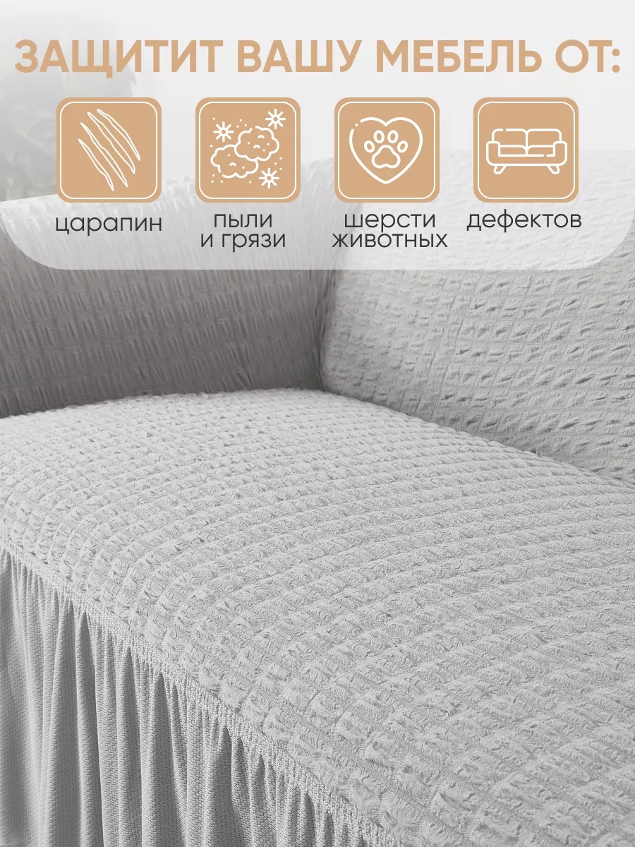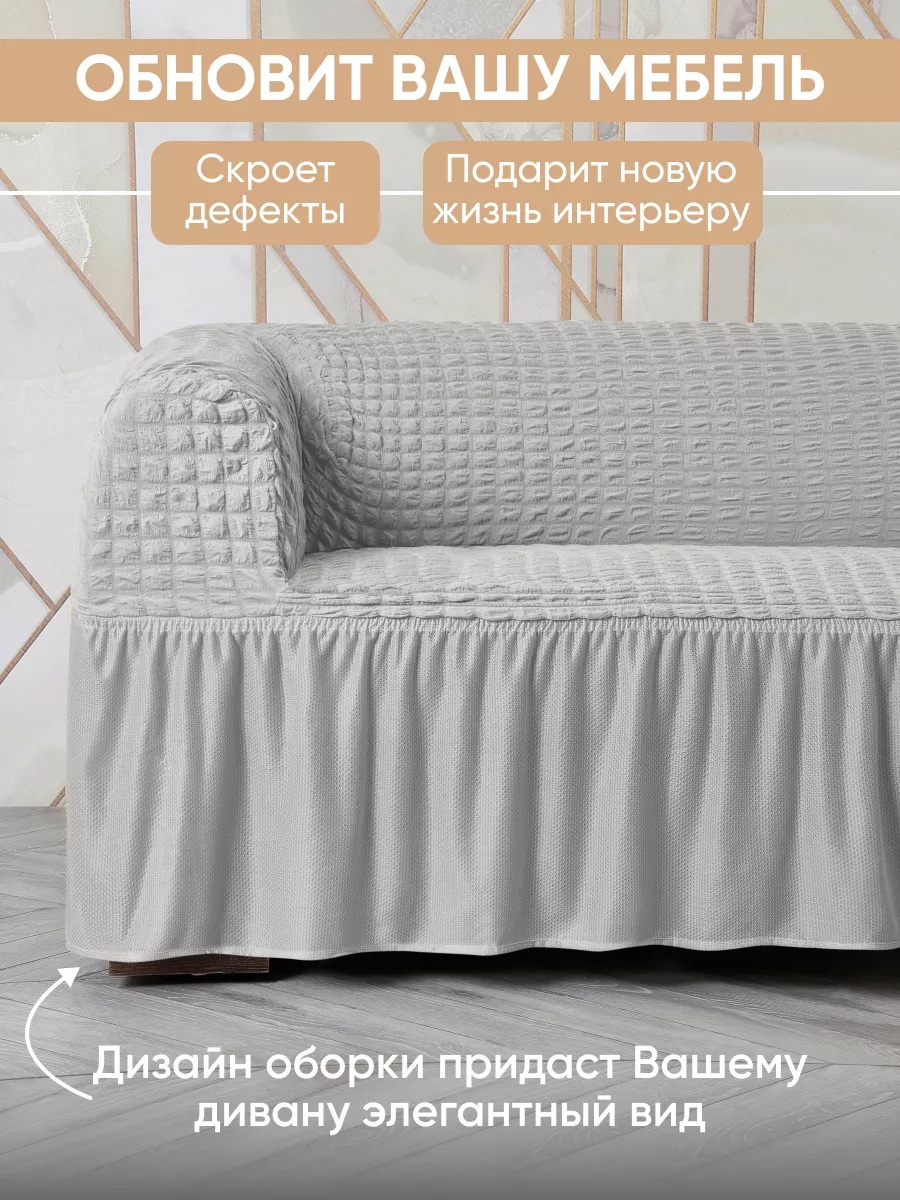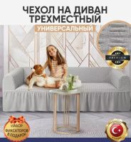 Чехол на 3-х местный диван с оборкой ,Светло-серый