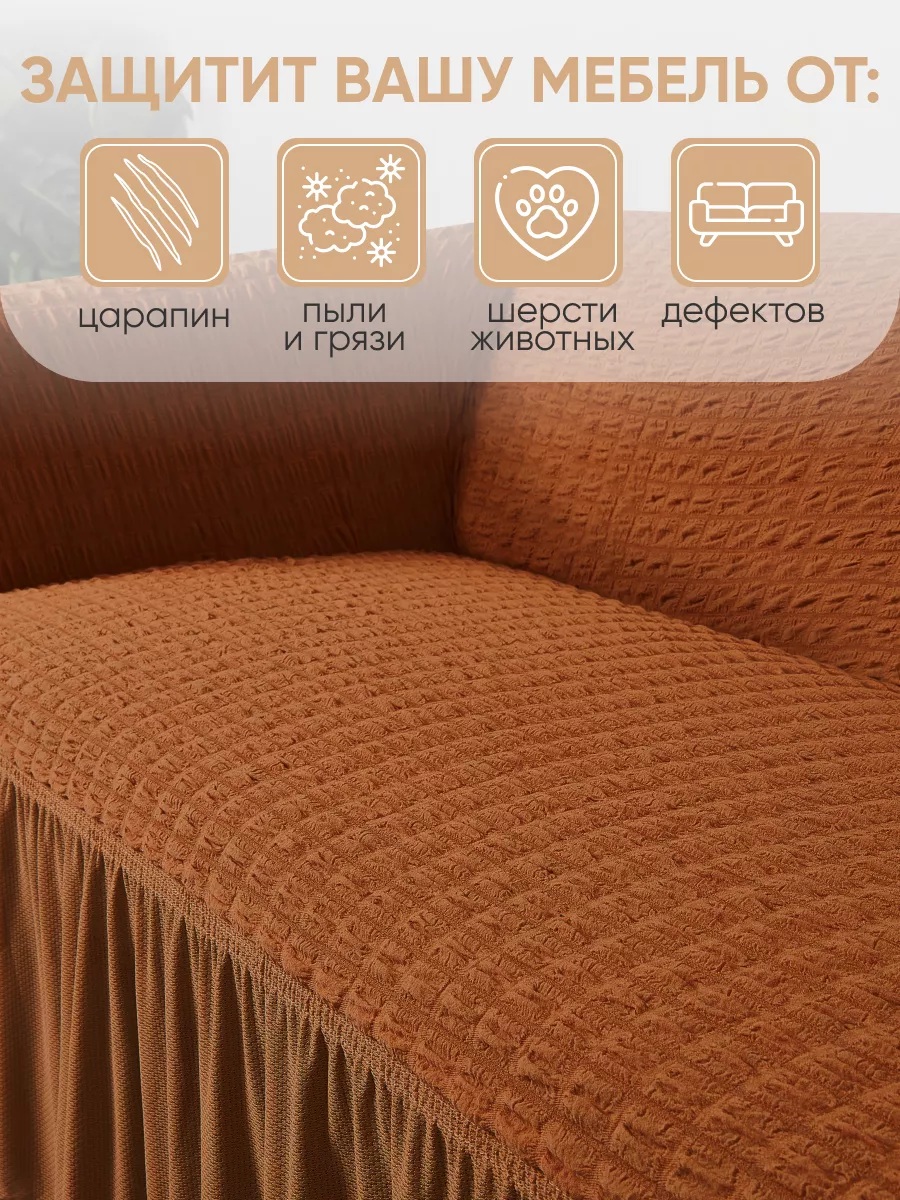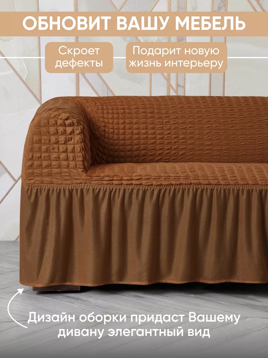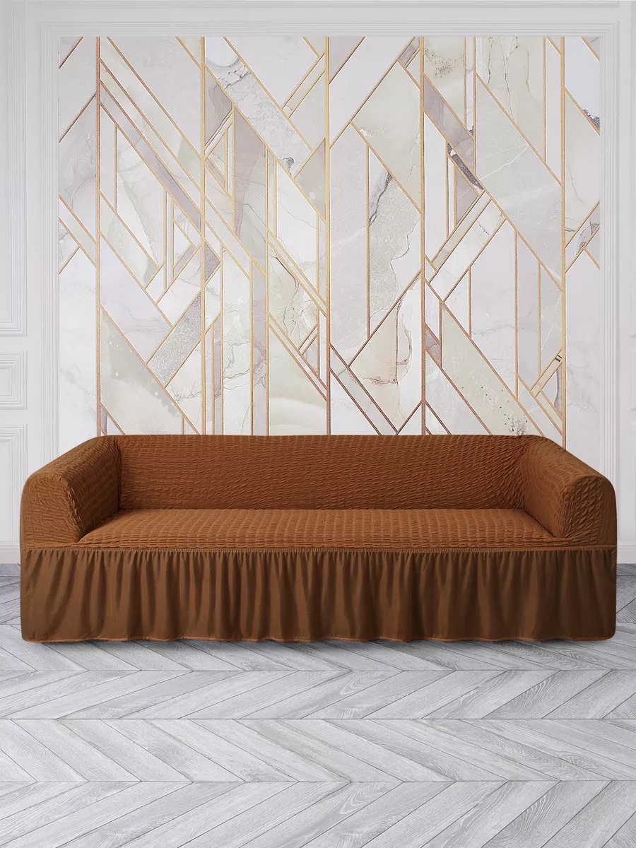 Чехол на 3-х местный диван с оборкой ,темно-коричневый