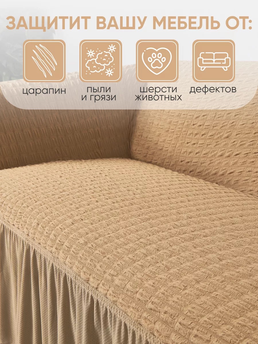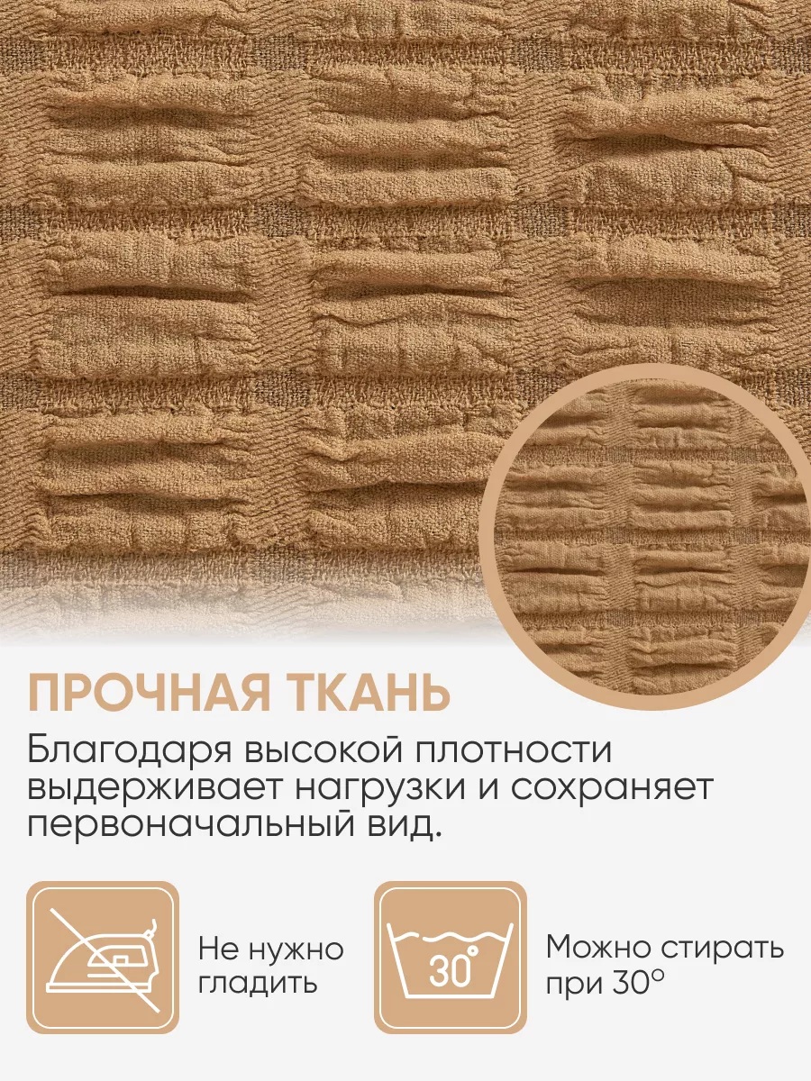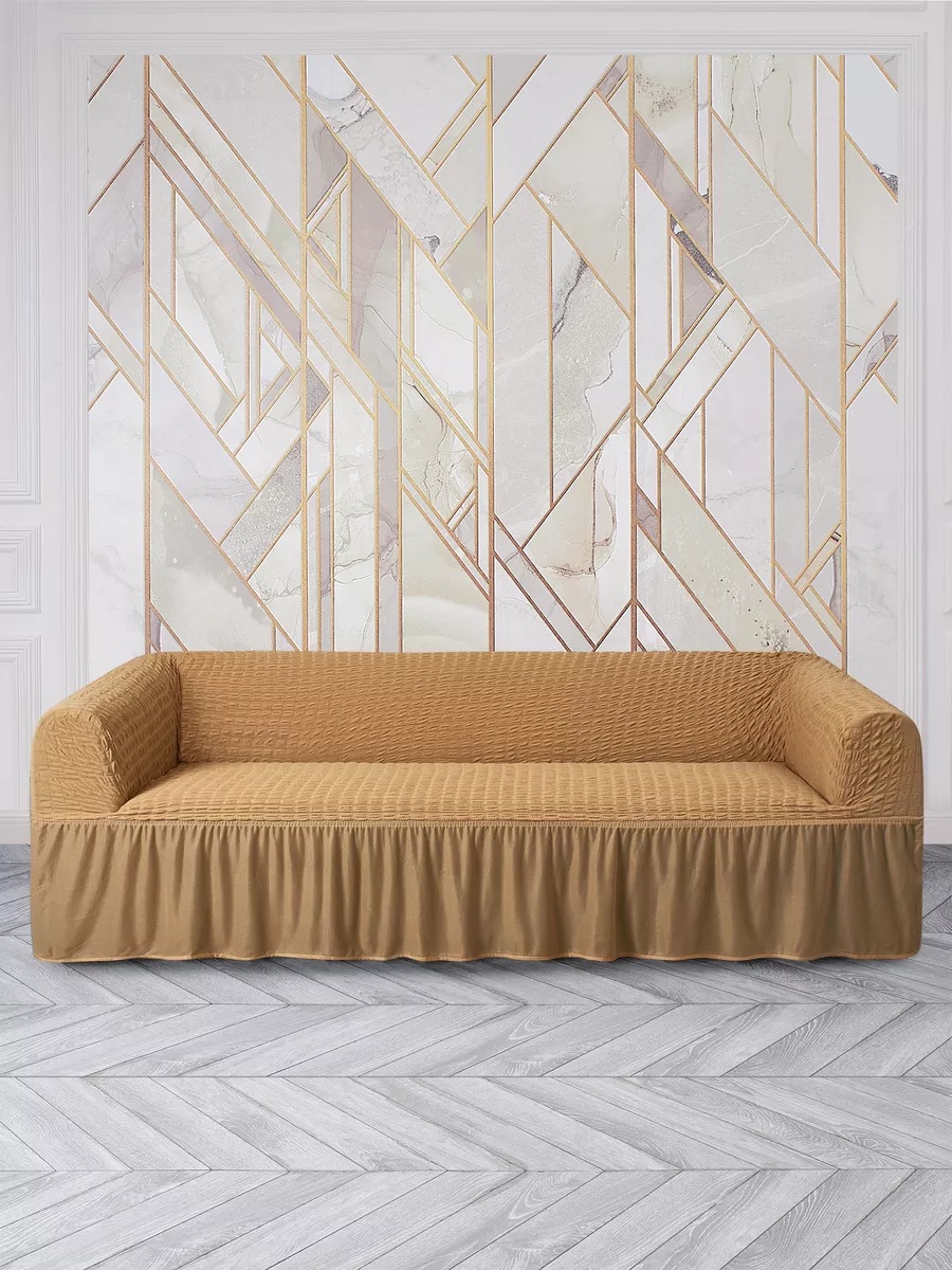 Мягкий и приятный на ощупь материал чехла создает атмосферу комфорта и уюта в вашем доме. Расслабьтесь на любимом диване, зная, что он надежно защищен от любых случайностей. Простота в уходе – еще одно преимущество этого чехла. Его легко снять и постирать в стиральной машине, поддерживая чистоту и свежесть вашего интерьера без лишних усилий. Позвольте себе насладиться теплом и уютом с чехлом на 3-х местный диван с оборкой в медовом оттенке.