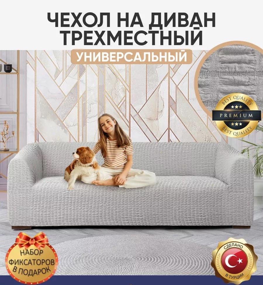Чехол на 3-х местный диван без оборки ,светло-серый