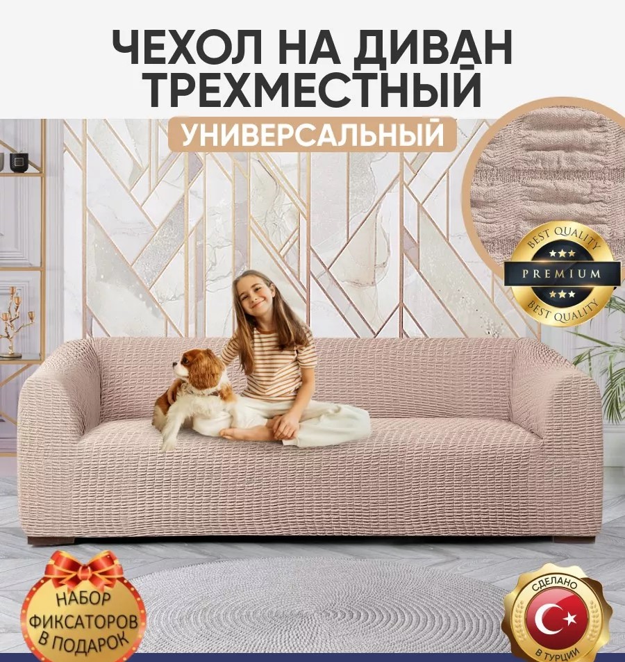 Чехол на 3-х местный диван без оборки ,светлое какао
