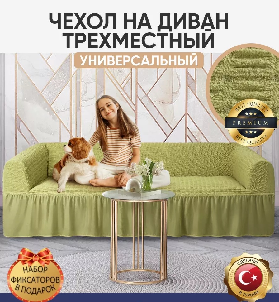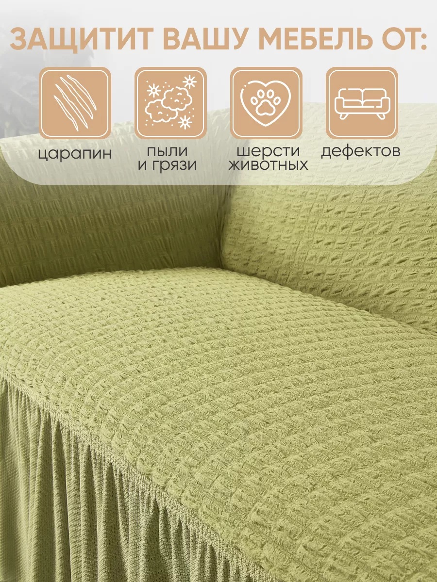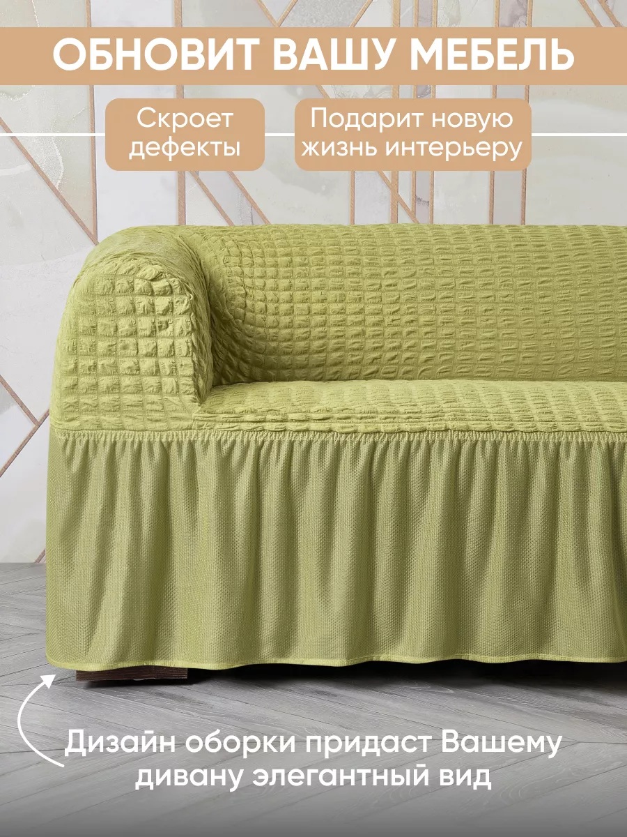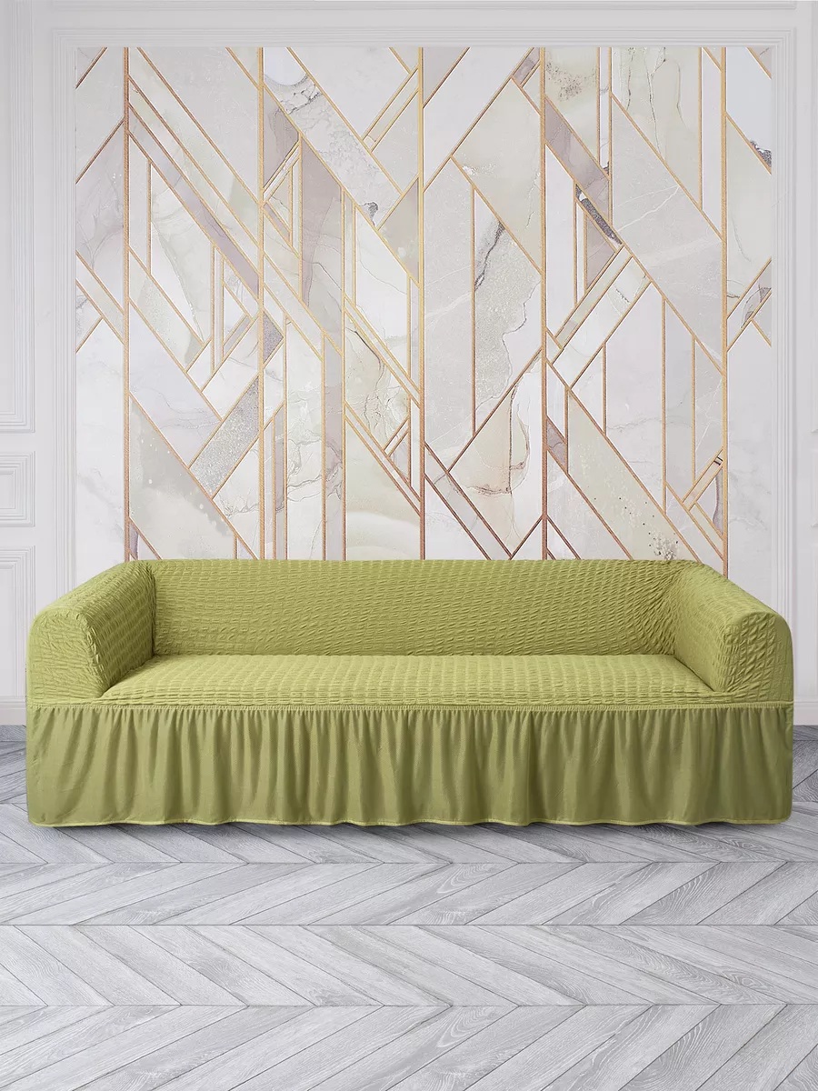 Чехол на 3-х местный диван с оборкой ,фисташковый
