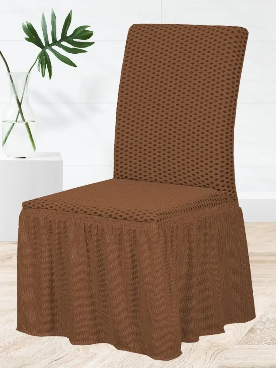 Набор чехлов на стулья с оборкой (6 шт)Жаккард ,коричневый