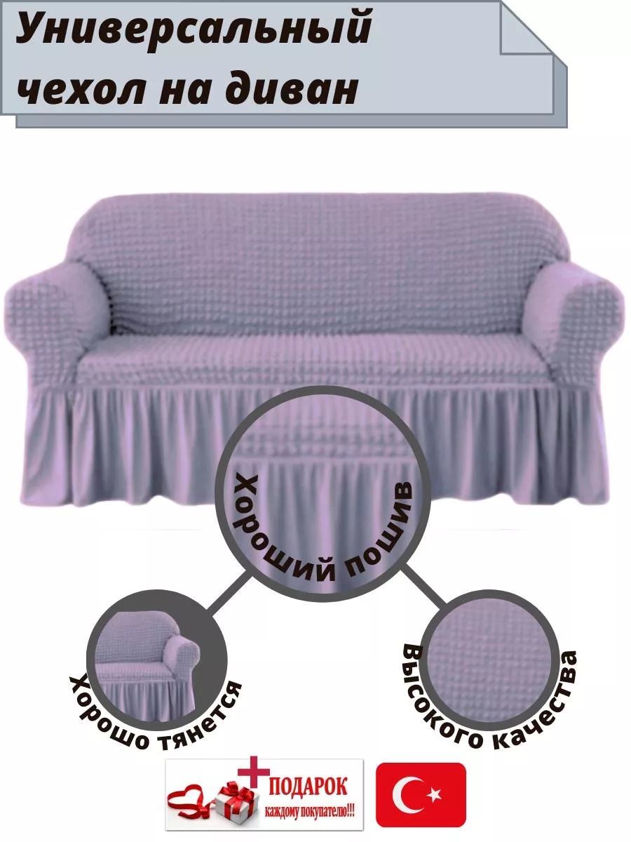 Чехол на 3-х местный диван с оборкой ,платина, пыльная сирень