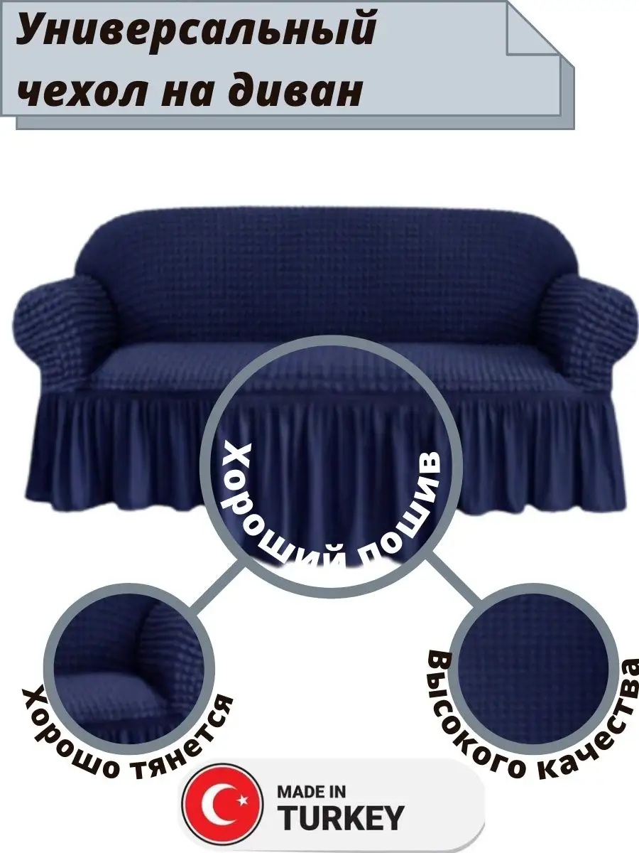 Чехол на 3-х местный диван с оборкой , темно-синий