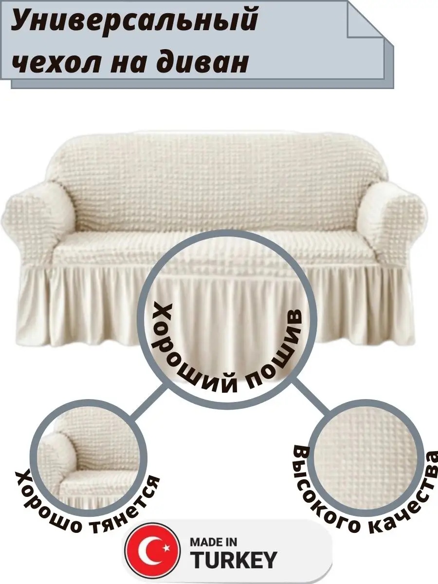 Чехол на 3-х местный диван с оборкой , кремовый