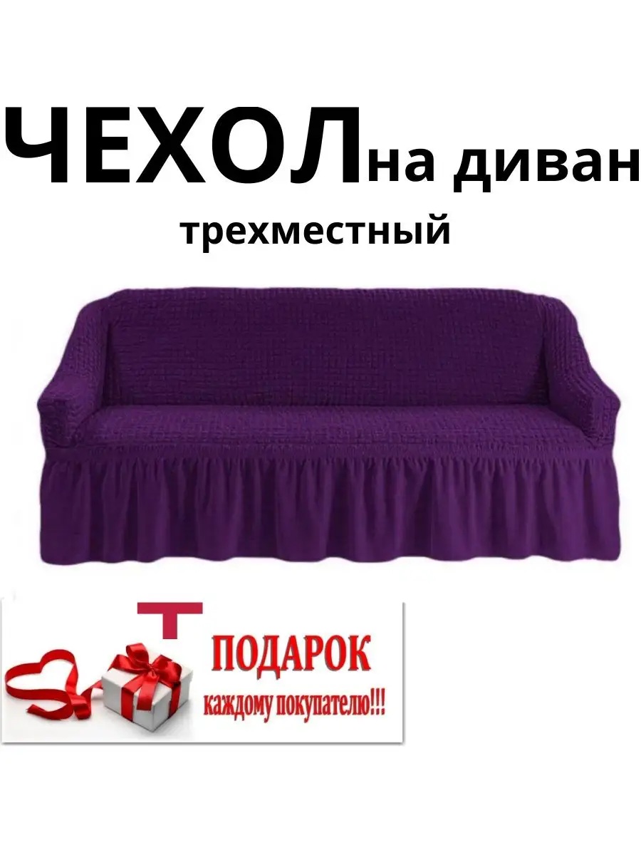 Чехол на 3-х местный диван с оборкой ,темно-фиолетовый