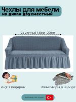 Чехол на 2-х местный диван с оборкой ,серо-голубой