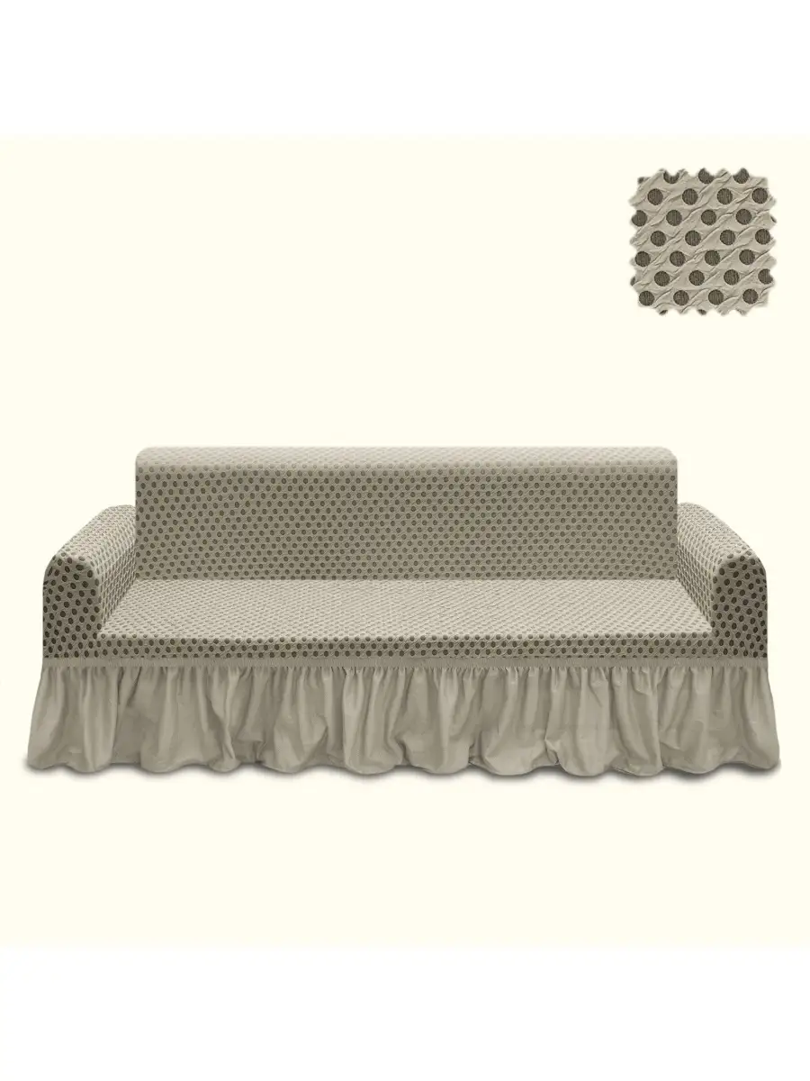 Чехол на 3-х местный диван с оборкой Жаккард Соты,бежевый