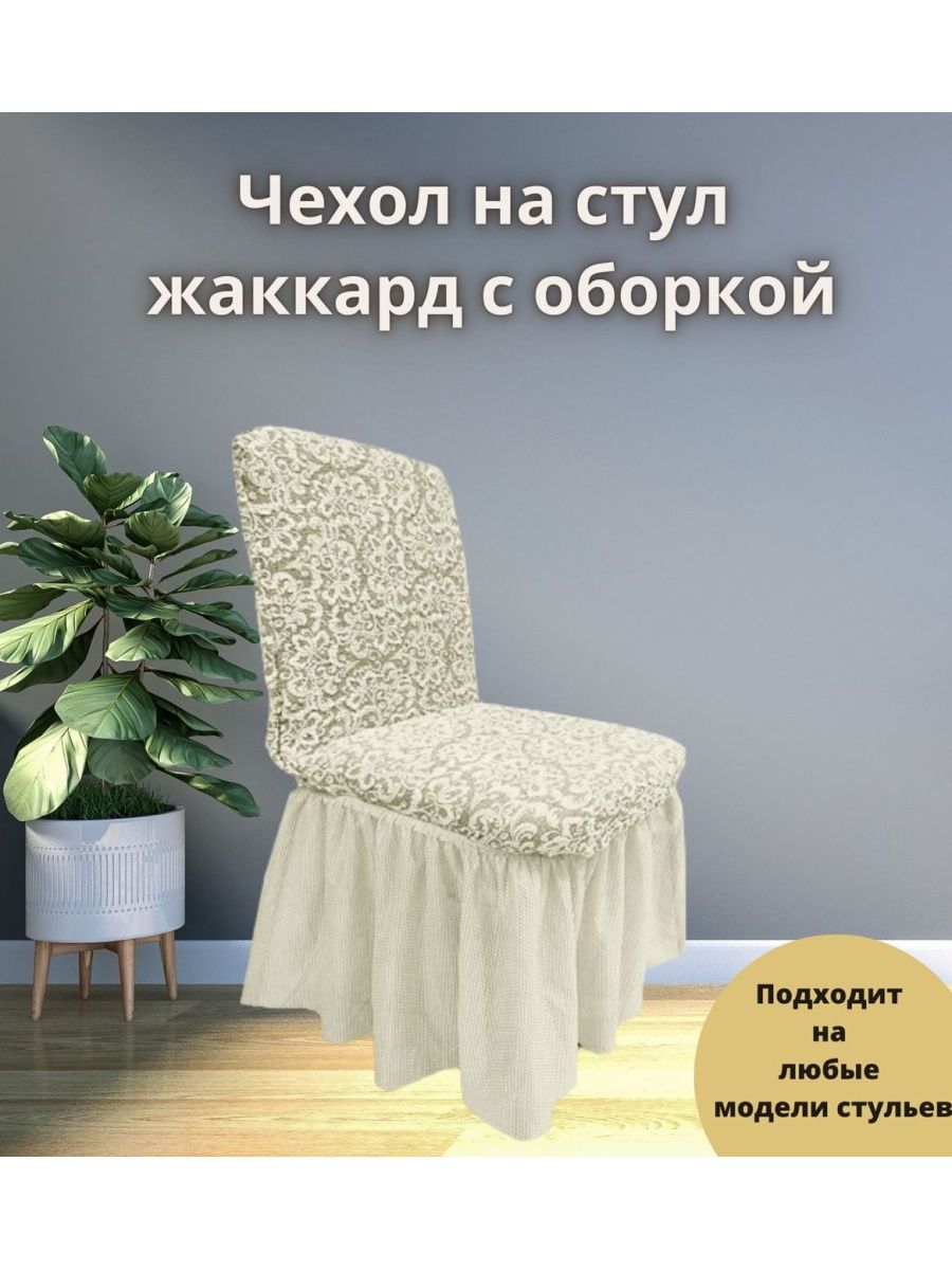 Чехол на стул с оборкой Жаккард ,Ванильный