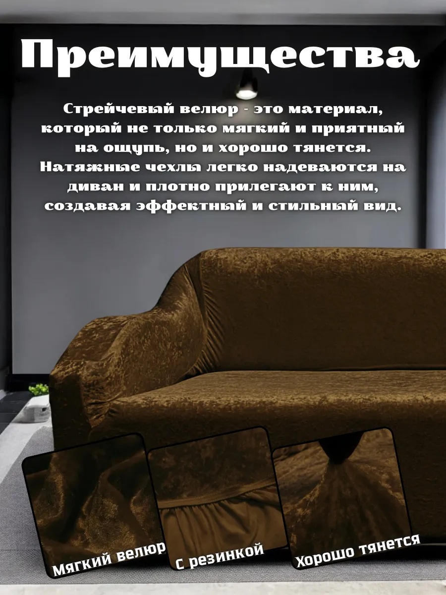 Чехол на 3-местный диван, без оборки, велюр, коричневый