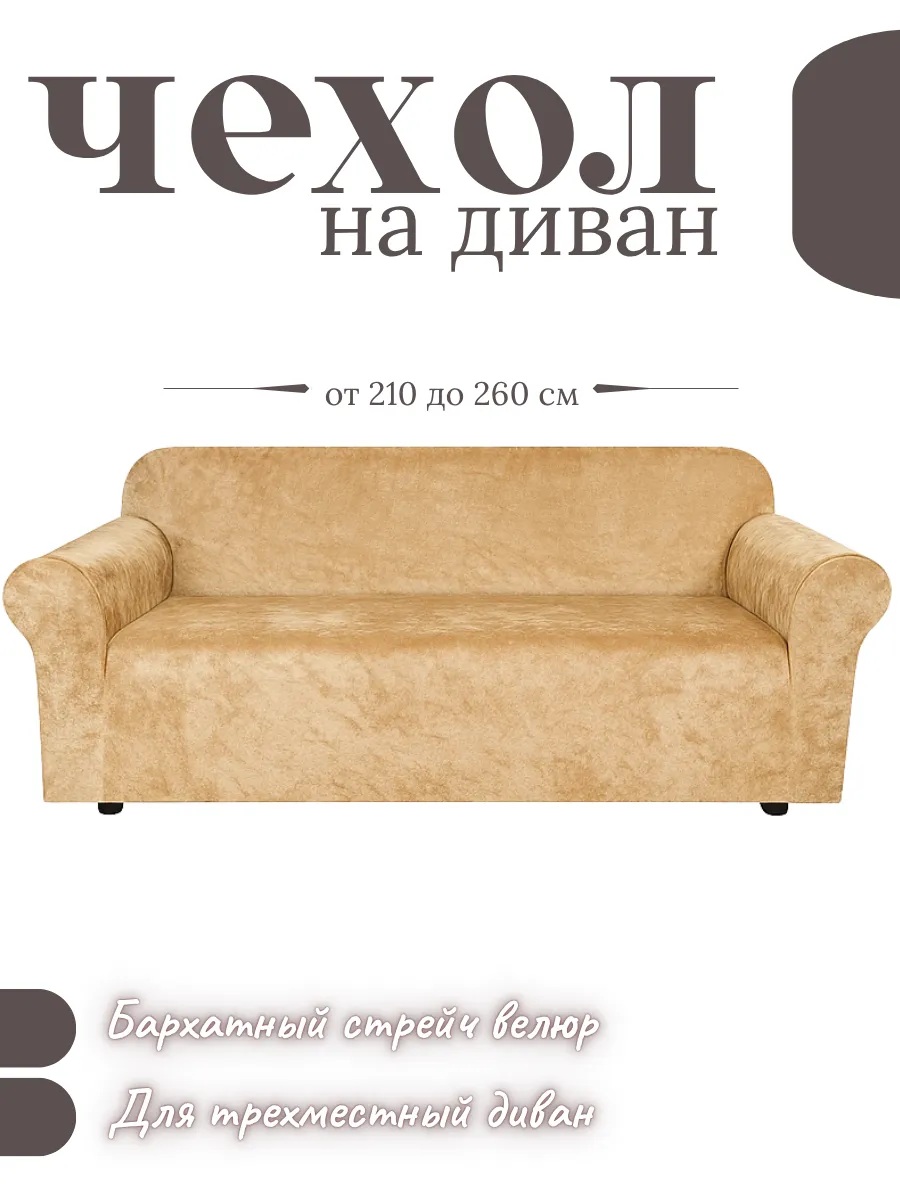 Чехол на 3-местный диван, без оборки, велюр, медово-бежевый