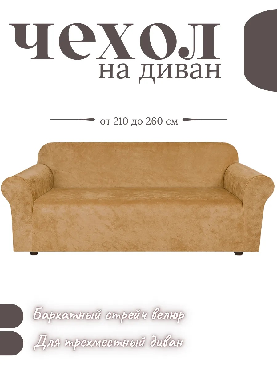 Чехол на 3-местный диван, без оборки, велюр, медовый