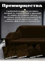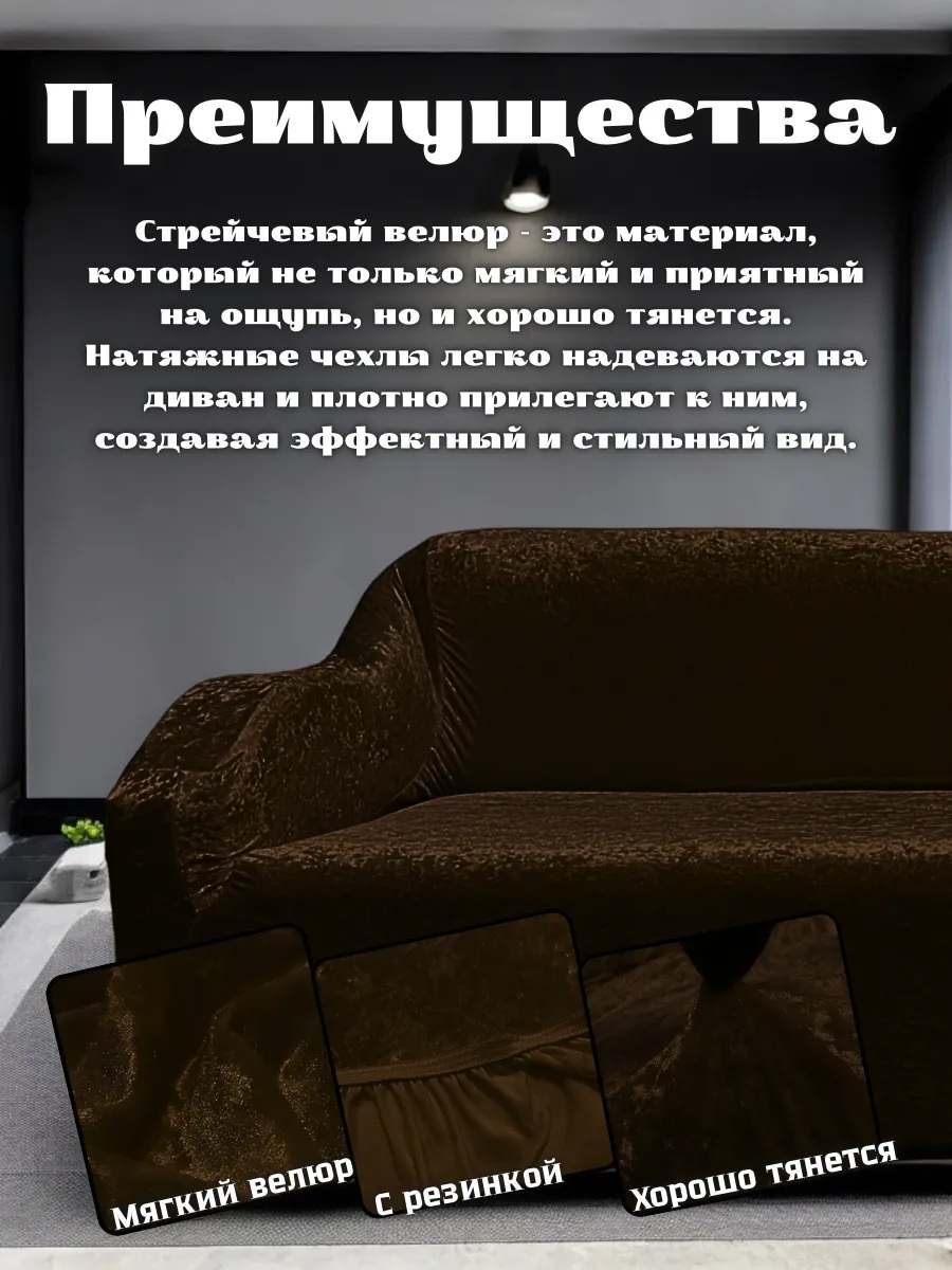 Чехол на 3-местный диван, без оборки, велюр, шоколадный