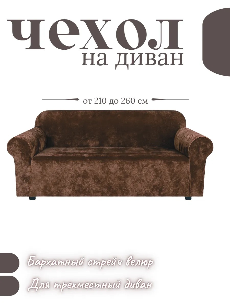 Чехол на 3-местный диван, без оборки, велюр, шоколадный трюфель