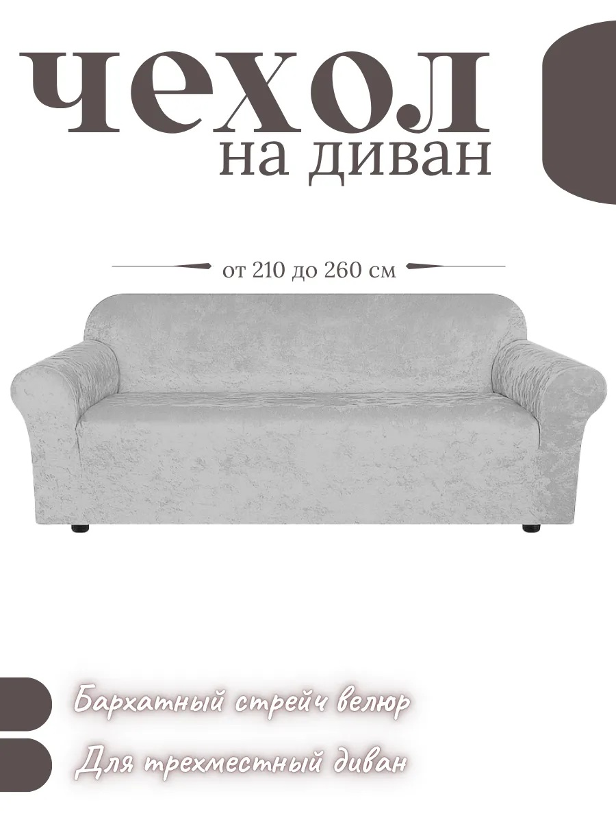Чехол на 3-местный диван, без оборки, велюр, светло-серый