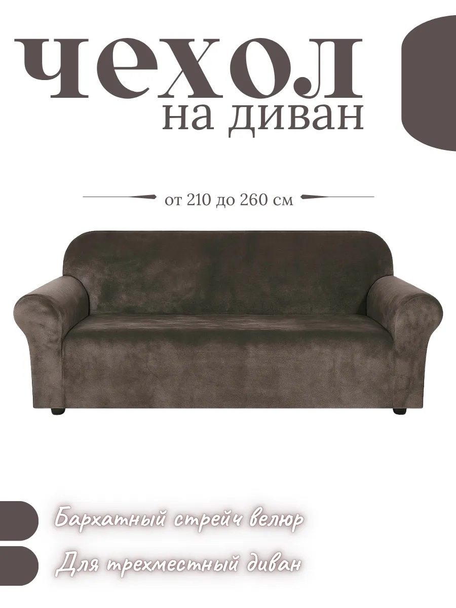 Чехол на 3-местный диван, без оборки, велюр, темный горький шоколад