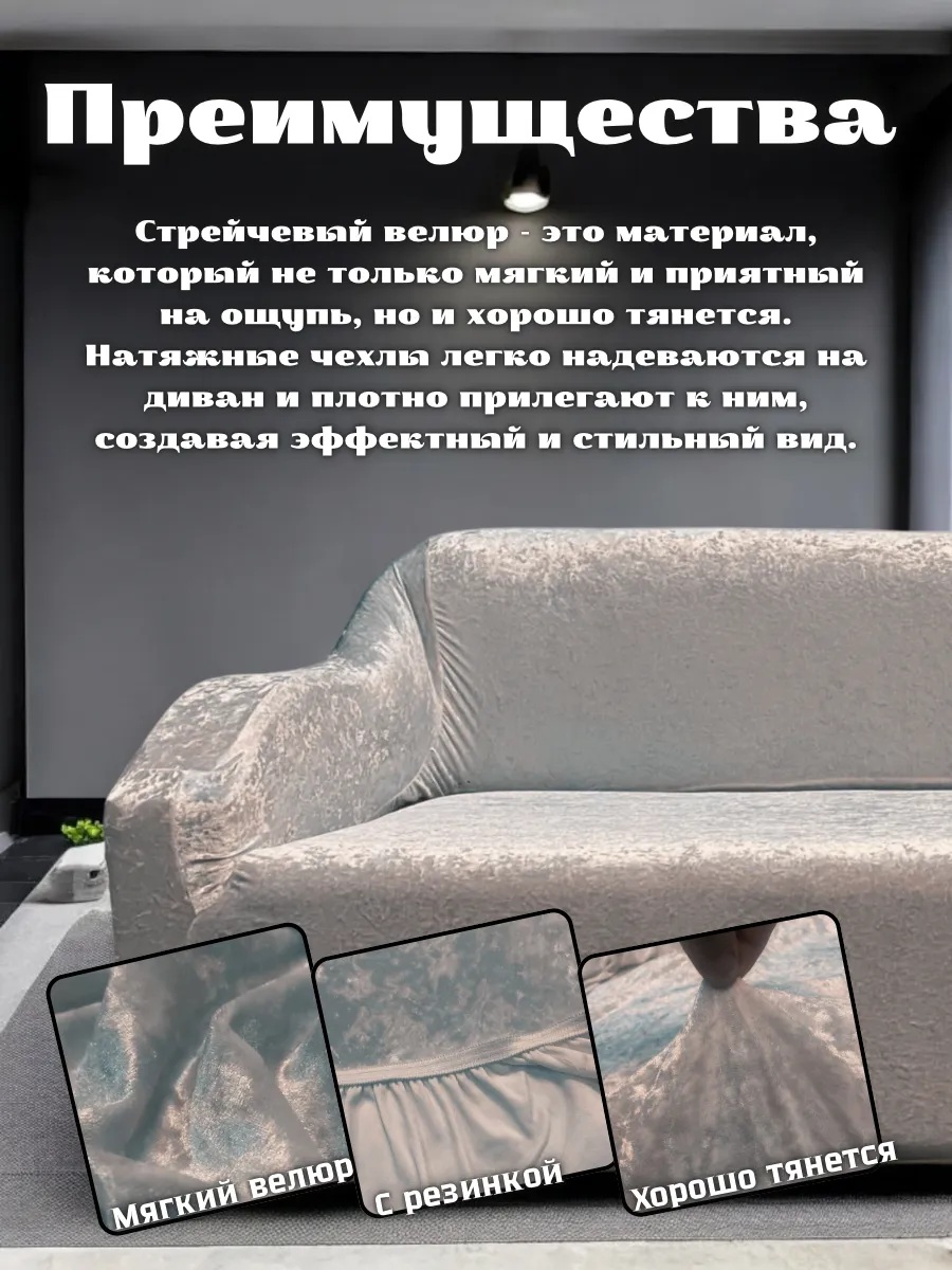 Чехол на 3-местный диван, без оборки, велюр, топленое молоко