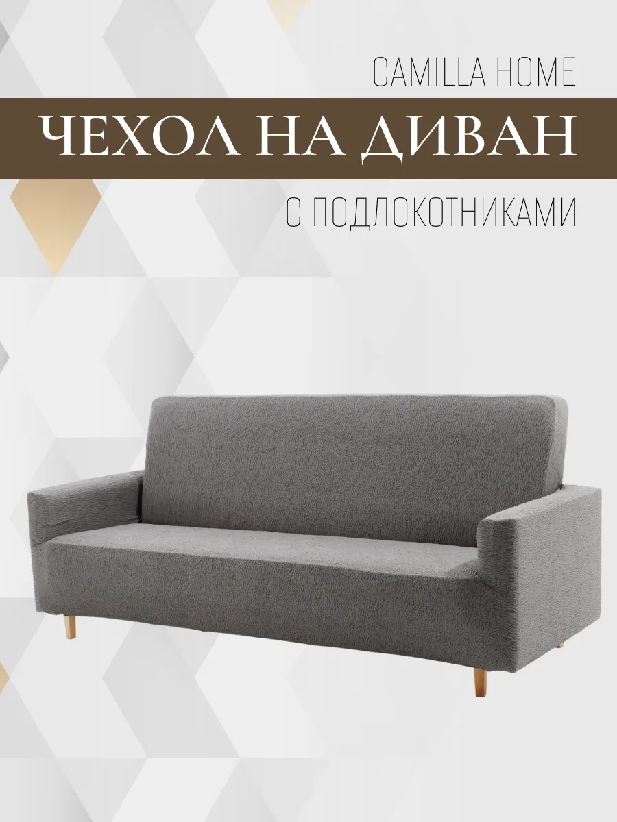 Чехол на 3-местный диван, без оборки, жаккард, антрацитовый