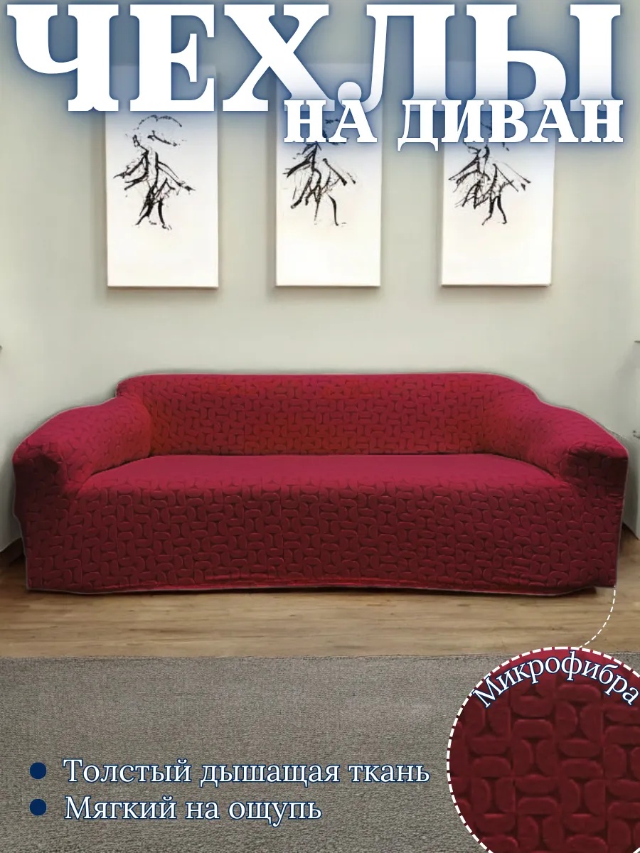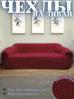 Чехол на 3-местный диван, без оборки, жаккард, бордовый