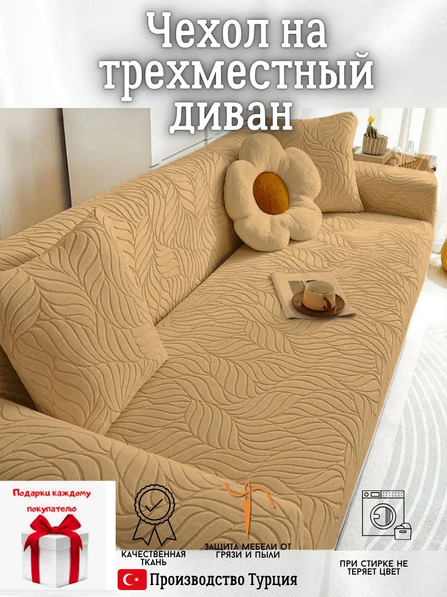 Чехол на 3-местный диван, без оборки, жаккард, кофе