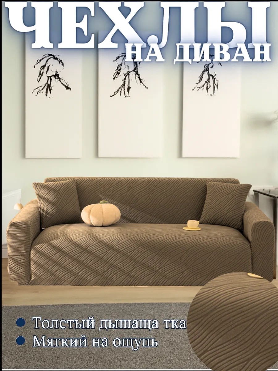 Чехол на 3-местный диван, без оборки, жаккард, кофейный