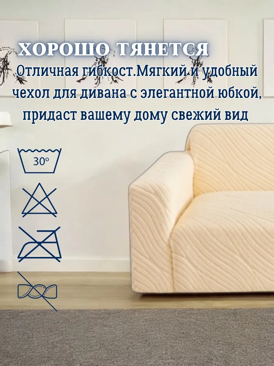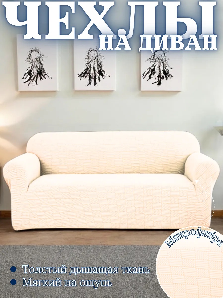 Чехол на 3-местный диван, без оборки, жаккард, кремовый