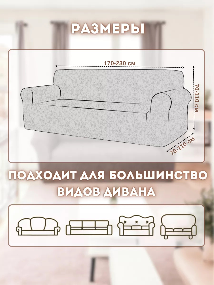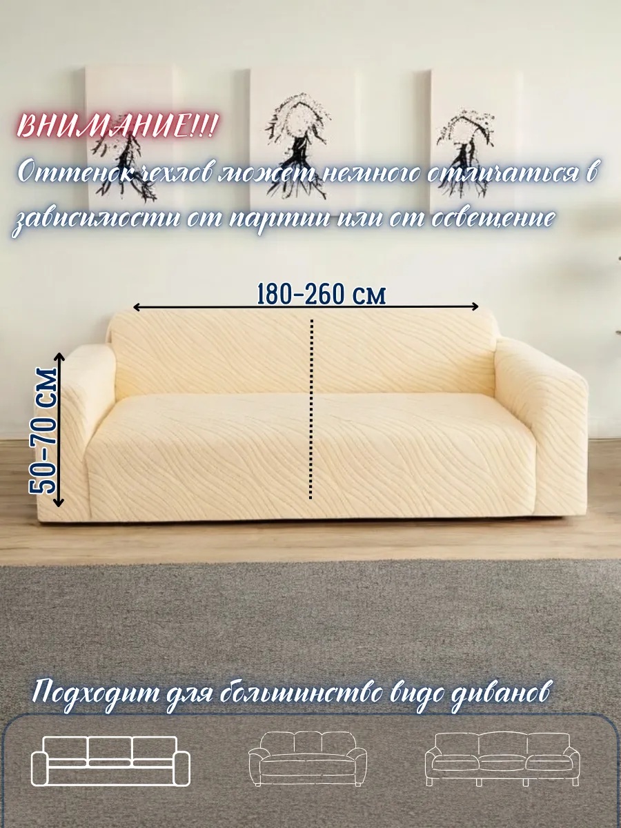 • чехол на 3-х местный диван - длина посадочного места без учета подлокотников - от 150 см до 260 см.