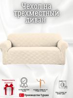 Чехол на 3-местный диван, без оборки, жаккард, кремовый
