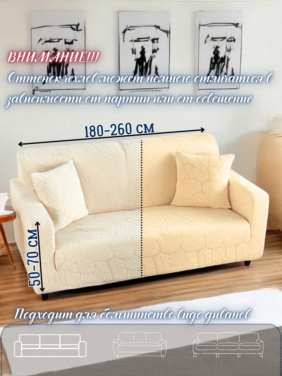 • чехол на 3-х местный диван - длина посадочного места без учета подлокотников - от 150 см до 260 см.
