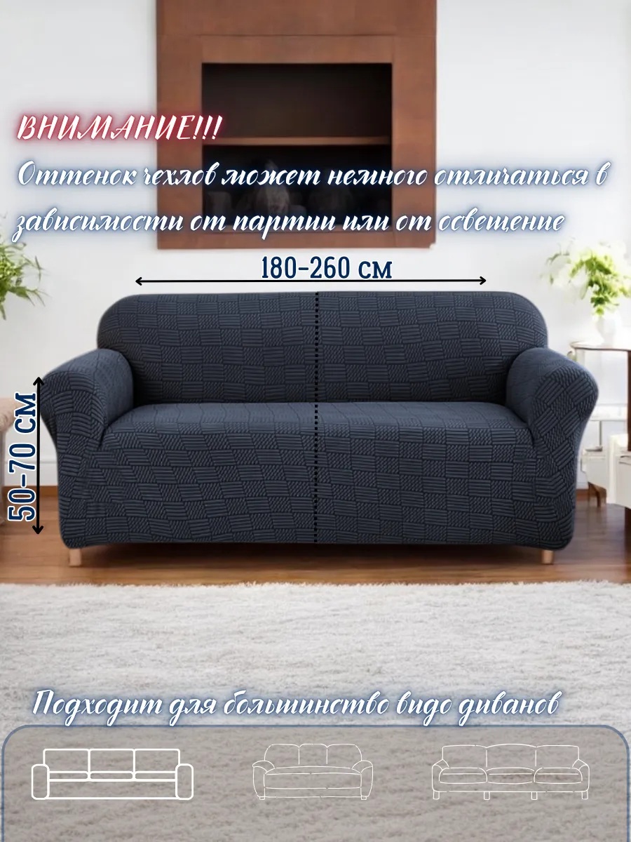 • чехол на 3-х местный диван - длина посадочного места без учета подлокотников - от 150 см до 260 см.